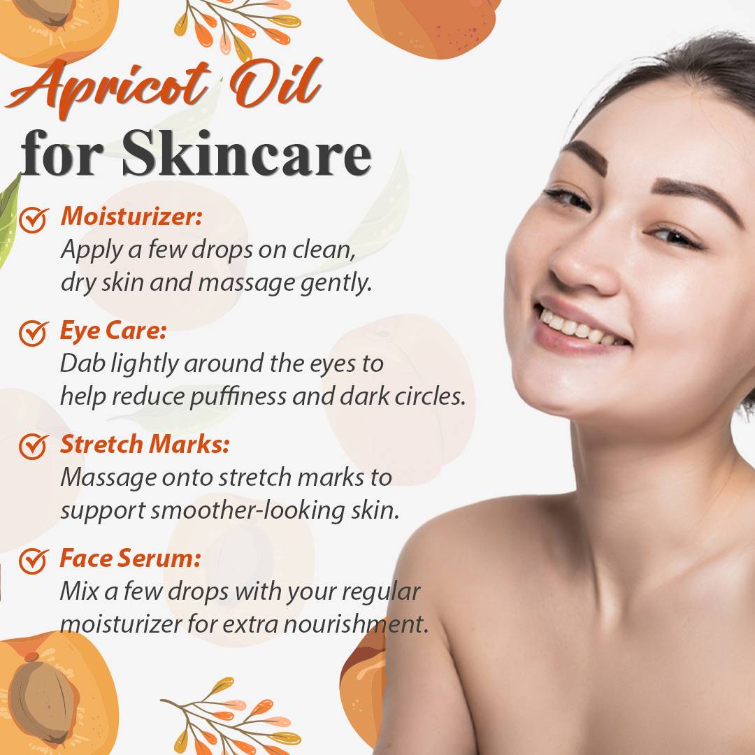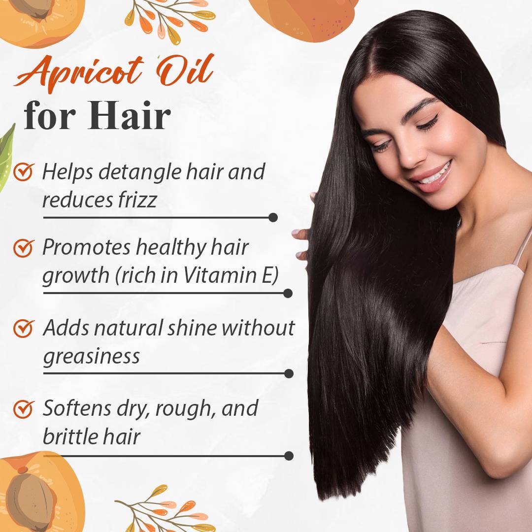 Massage warm apricot oil into scalp and through hair lengths 30–60 minutes before shampoo, or leave overnight once or twice a week.