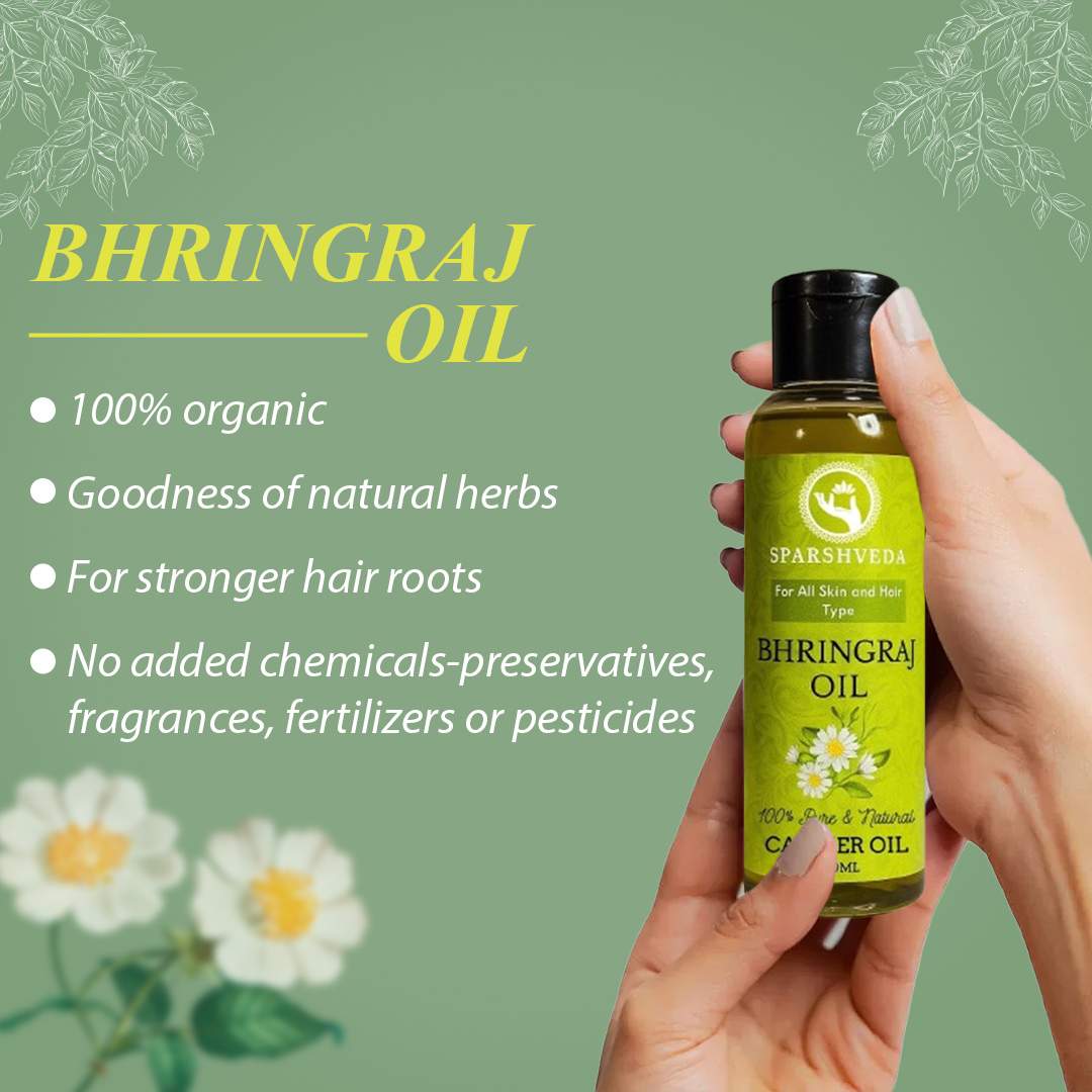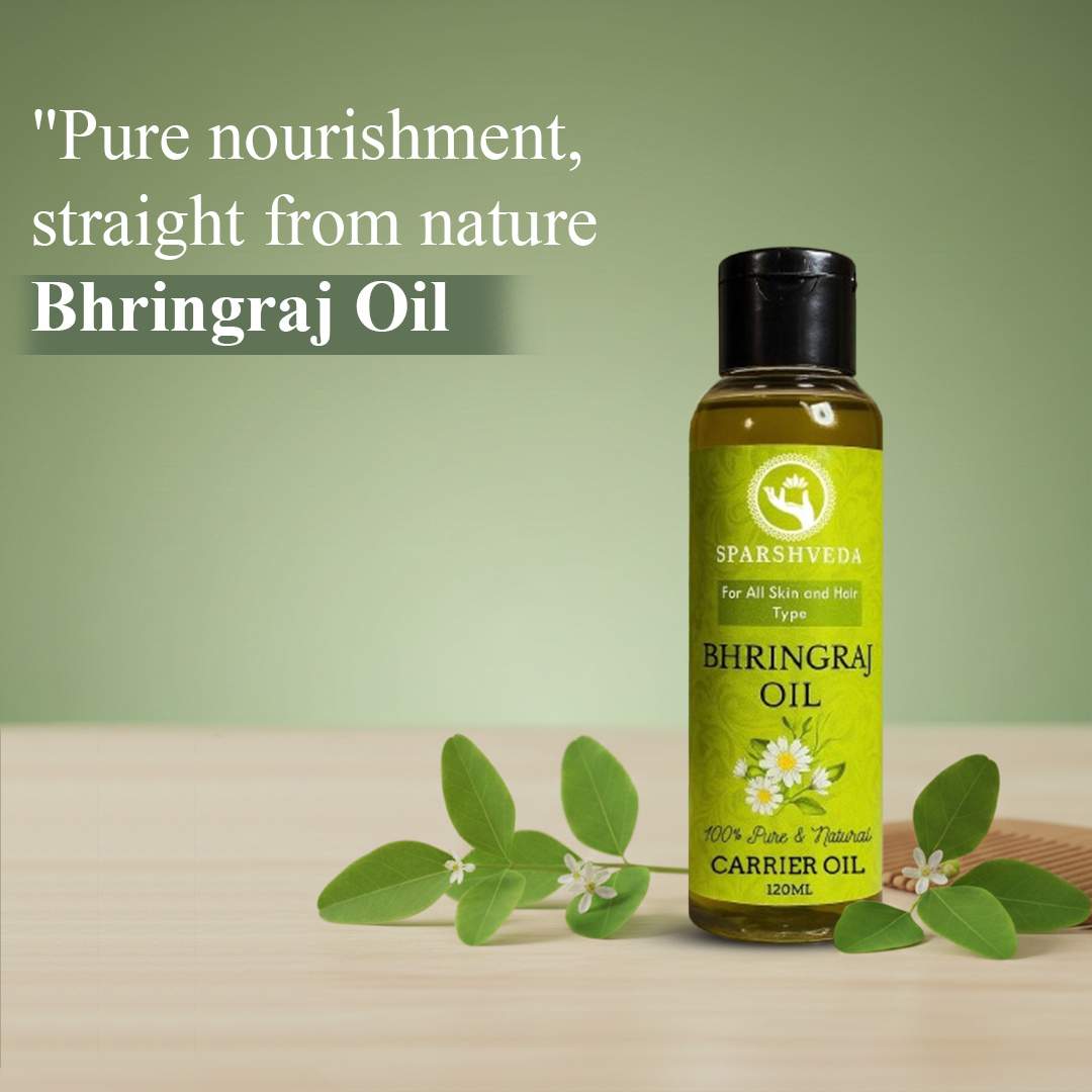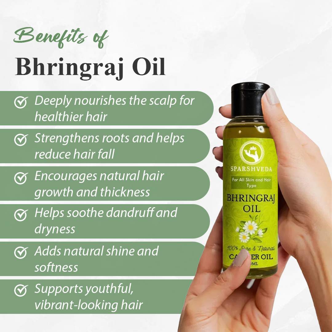 Sparshveda Bhringraj Oil is inspired by classical Ayurvedic formulations that use Bhringraj as the star herb for reversing hair damage and rejuvenating the scalp.