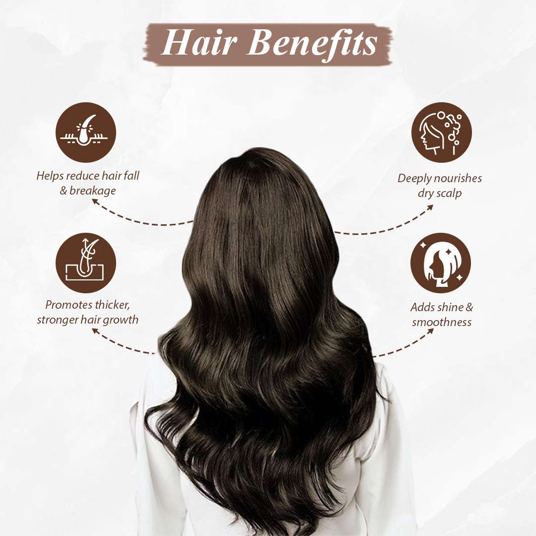 For hair and scalp, castor oil is best known for its ability to reduce hair fall, support stronger hair roots, and promote visible thickness and length over time.