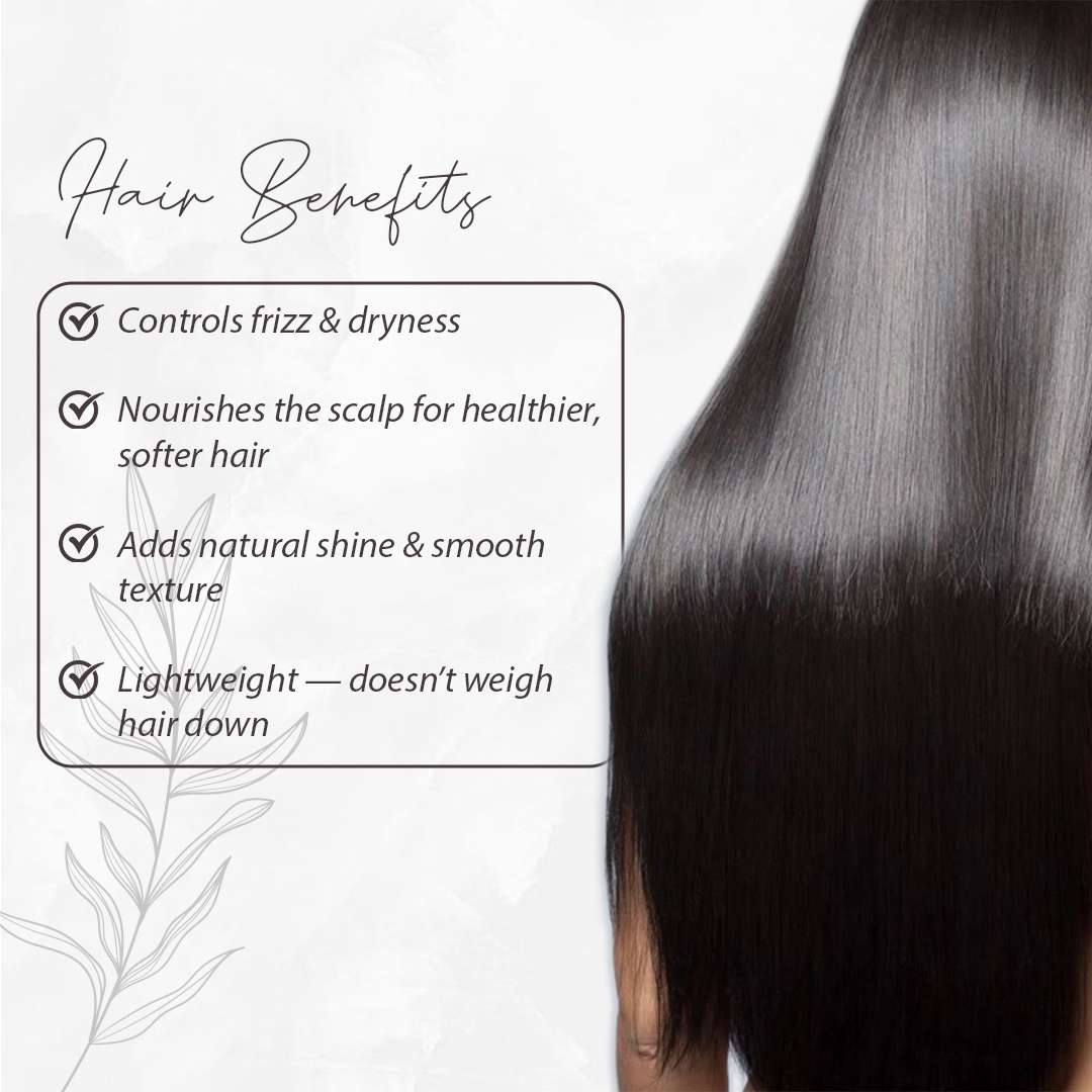 Hydrates the scalp, helps reduce dandruff, and supports healthy hair when massaged in.