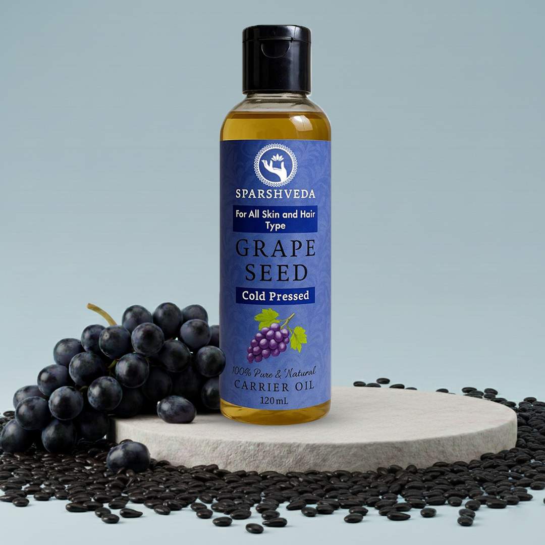 Sparshveda Grape seed Oil is extracted from premium Vitis vinifera seeds using cold pressing to retain its high levels of vitamin E, linoleic acid (omega 6), flavonoids, and proanthocyanidin polyphenols.