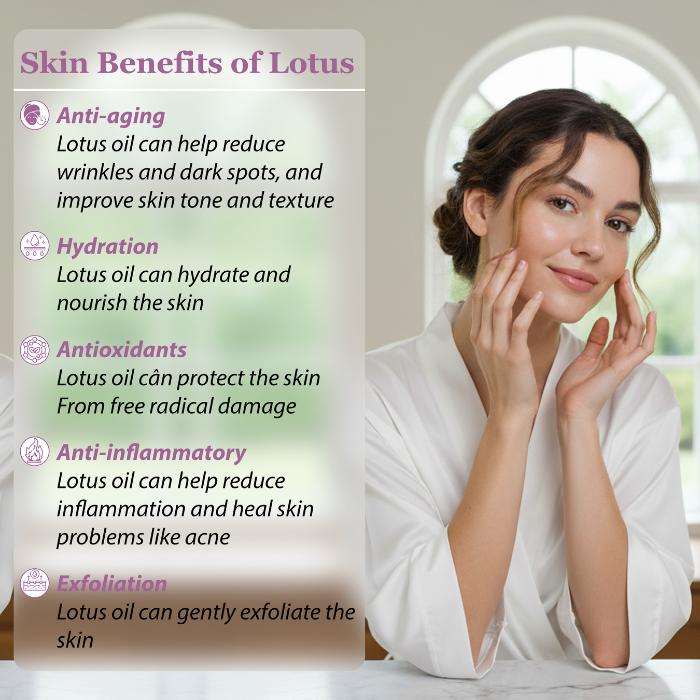 For skincare: Dilute 1–2 drops of lotus essential oil in a teaspoon (5 ml) of carrier oil such as jojoba, almond or coconut oil before applying to face or body. Perform a patch test before first use.