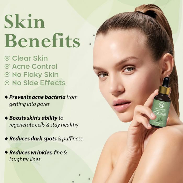 For skin health, rosemary essential oil is a potent ally against acne, aging, and dullness. Its antimicrobial properties fight acne-causing bacteria, while anti-inflammatory compounds soothe redness, irritation, and blemishes—making it ideal for oily or acne-prone skin. In Ayurveda, rosemary balances Pitta dosha, which is often responsible for inflammatory skin conditions.