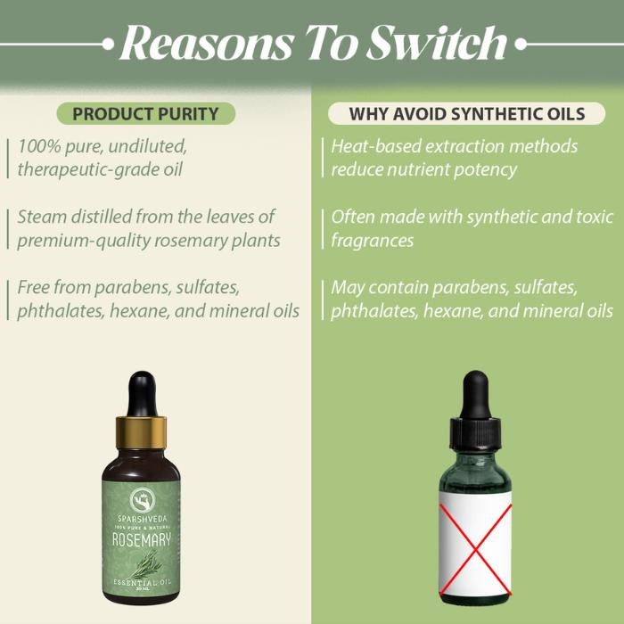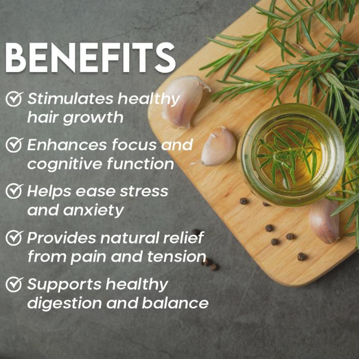 Scientific studies show that rosemary oil can be as effective as minoxidil (a common hair growth medication) in promoting hair regrowth, but without the side effects like scalp itching.