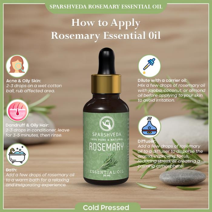 Always dilute rosemary essential oil with a carrier oil before topical application—typically 1–3% dilution (1–3 drops per tablespoon of carrier oil).