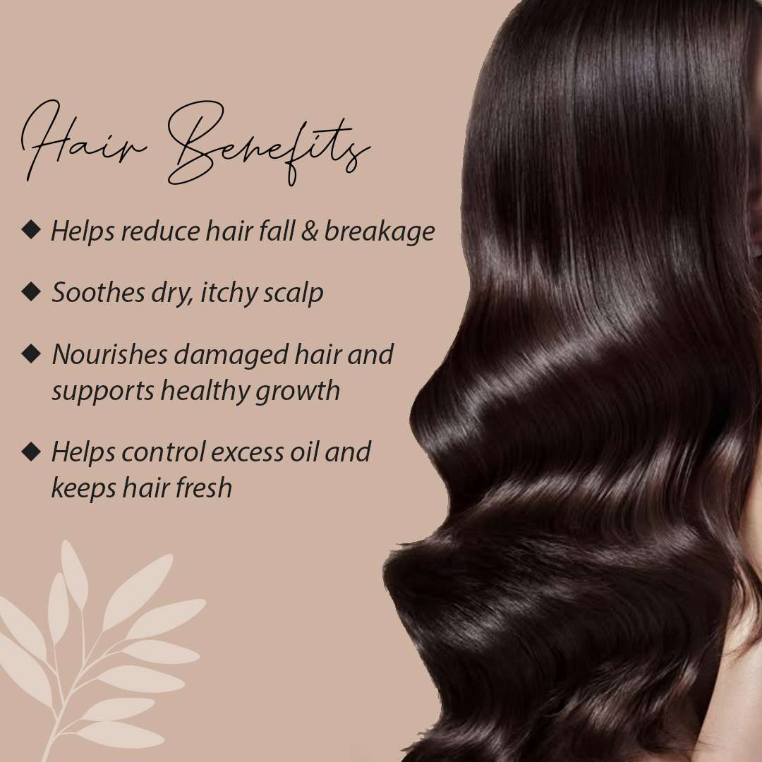 Supports hair and scalp health by nourishing follicles, reducing dryness and improving shine and strength.