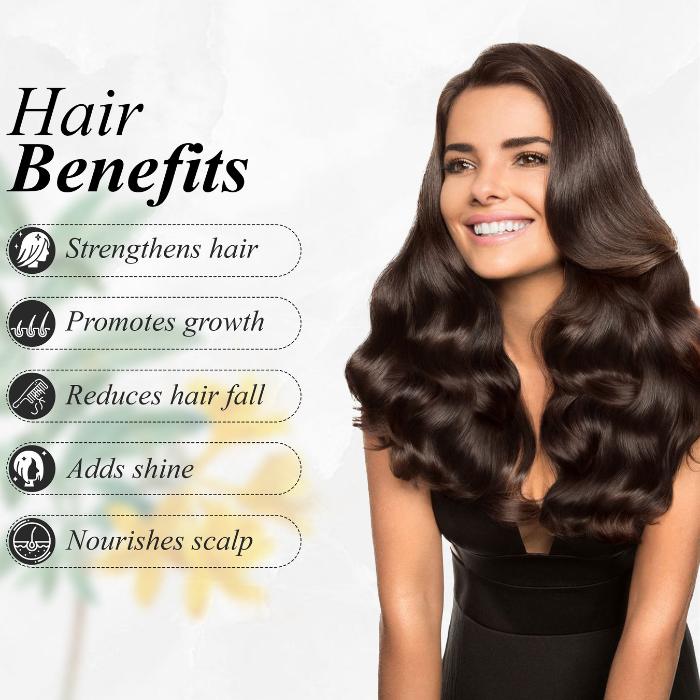 Promotes Hair Growth: Stimulates follicles, reduces hair fall, treats dandruff, and adds natural shine to hair.